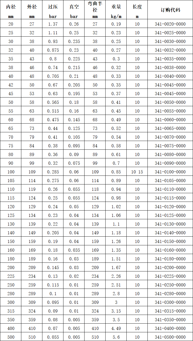 轻型 内部平滑 弯曲性 良好的耐碱及耐酸性能 良好的抗化学性能 良好的抗紫外及臭氧性能 弯曲半径小 不易扭结 不含增塑剂 符合 RoHS 规定 根据德国TRBS 2153 (原 BGR 132): 可通过接地排静电, 推荐用于有易燃易爆粉体的场合
