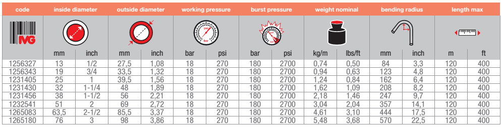 钢丝加强层蒸气管,用于输送最大工作压力为18 bar(260psi)的饱和蒸汽。用于化工,石化以及一般工业应用,EPS/EPP泡沫塑料行业广泛应用。不建议用于蒸汽清洗机。该管可在18bar工作压力时短时间耐230°C的超饱和蒸汽。