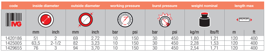 钢丝加强层蒸气管,用于输送最大工作压力为18 bar(260psi)的饱和蒸汽。用于化工,石化以及一般工业应用,EPS/EPP泡沫塑料行业广泛应用。不建议用于蒸汽清洗机。该管可在18bar工作压力时短时间耐230°C的超饱和蒸汽。